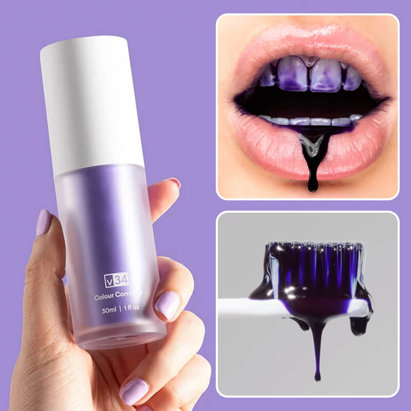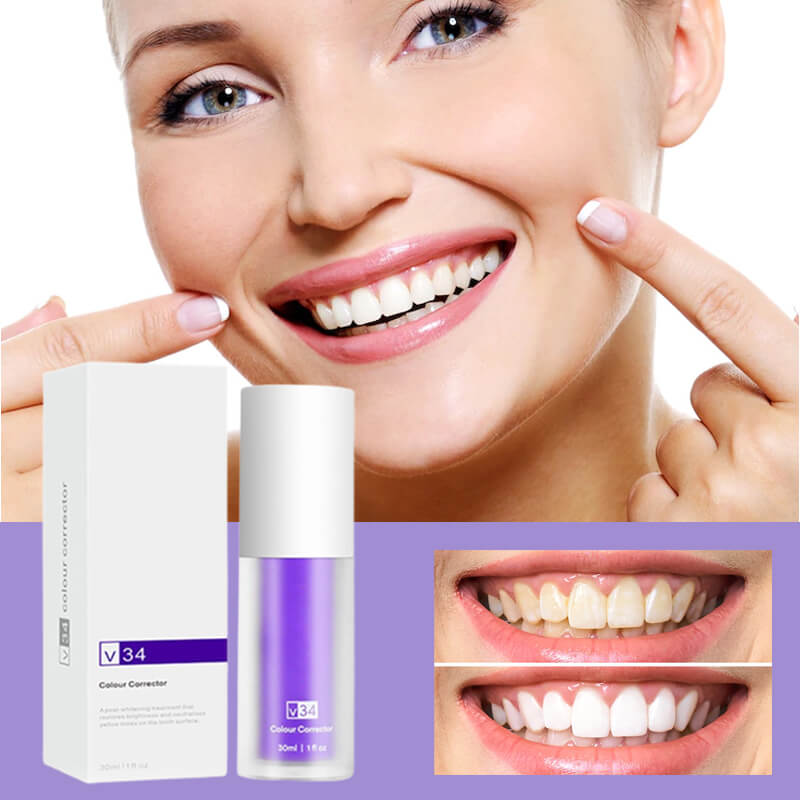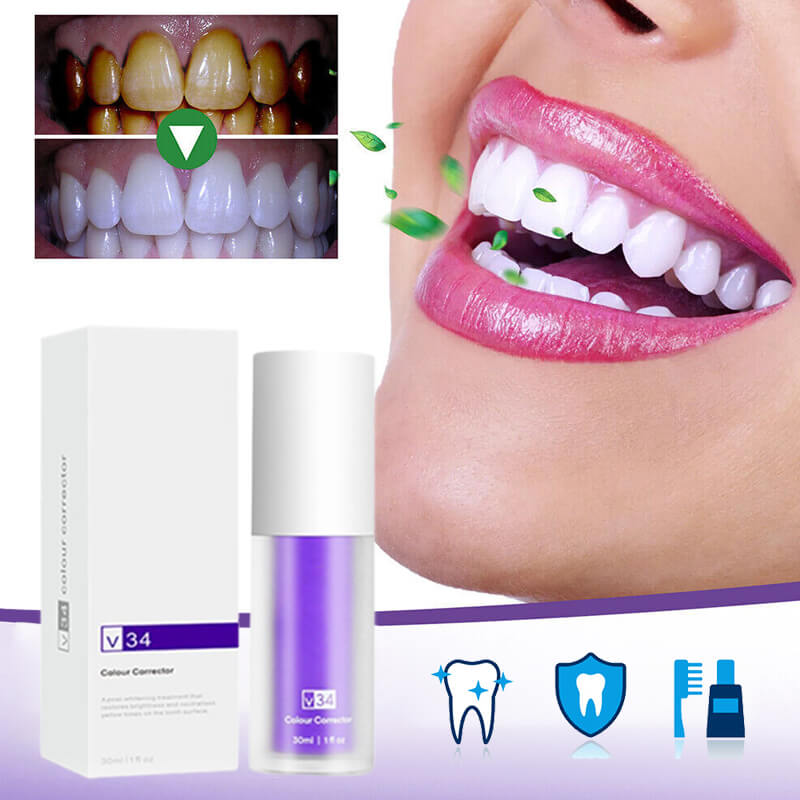 V34 Tooth Whitening Correction essence Solution, Targeted Yellowing 7-Day Whitening Correction Technology Purple toothpaste Oral